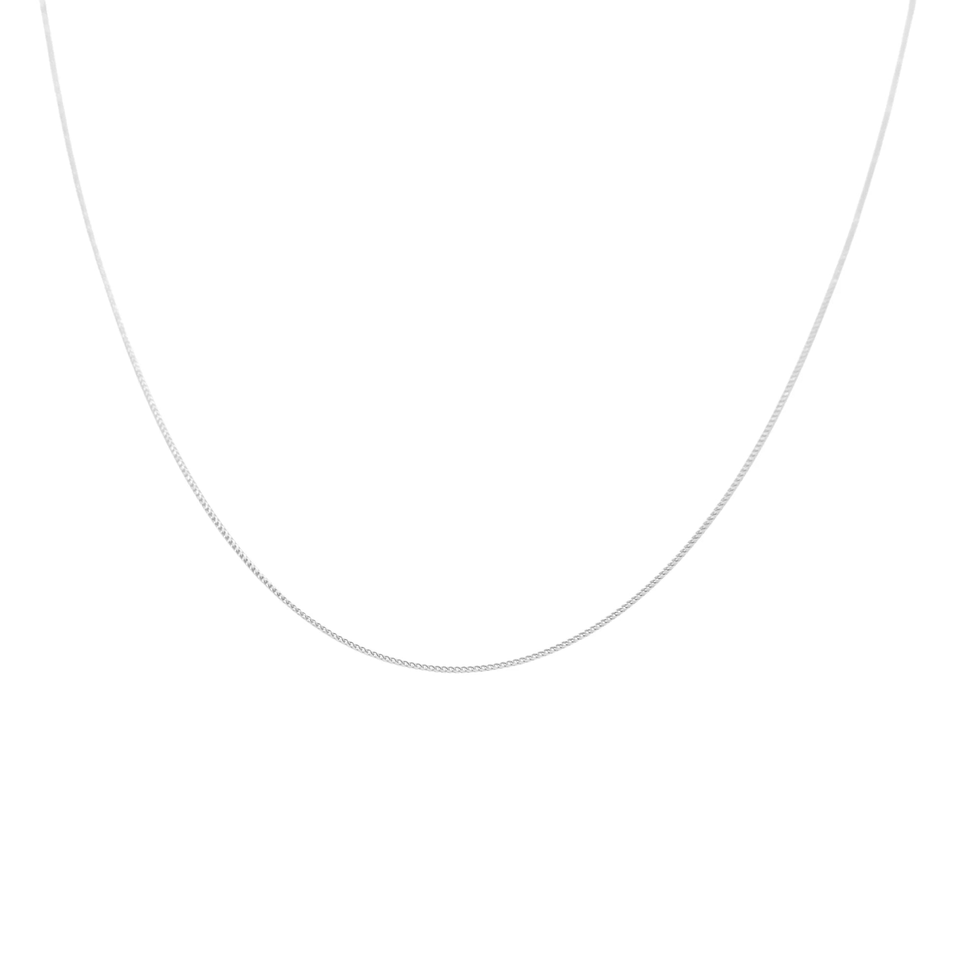 Sleek and sophisticated, this 14K white gold Franco link light chain features a refined 1mm design with tightly woven links for a smooth, flexible drape. Its polished white gold finish gives it a clean, radiant shine, perfect for everyday wear. At 16 inches, it sits beautifully at the neckline — ideal worn solo for a minimalist look or paired with your favorite pendant.