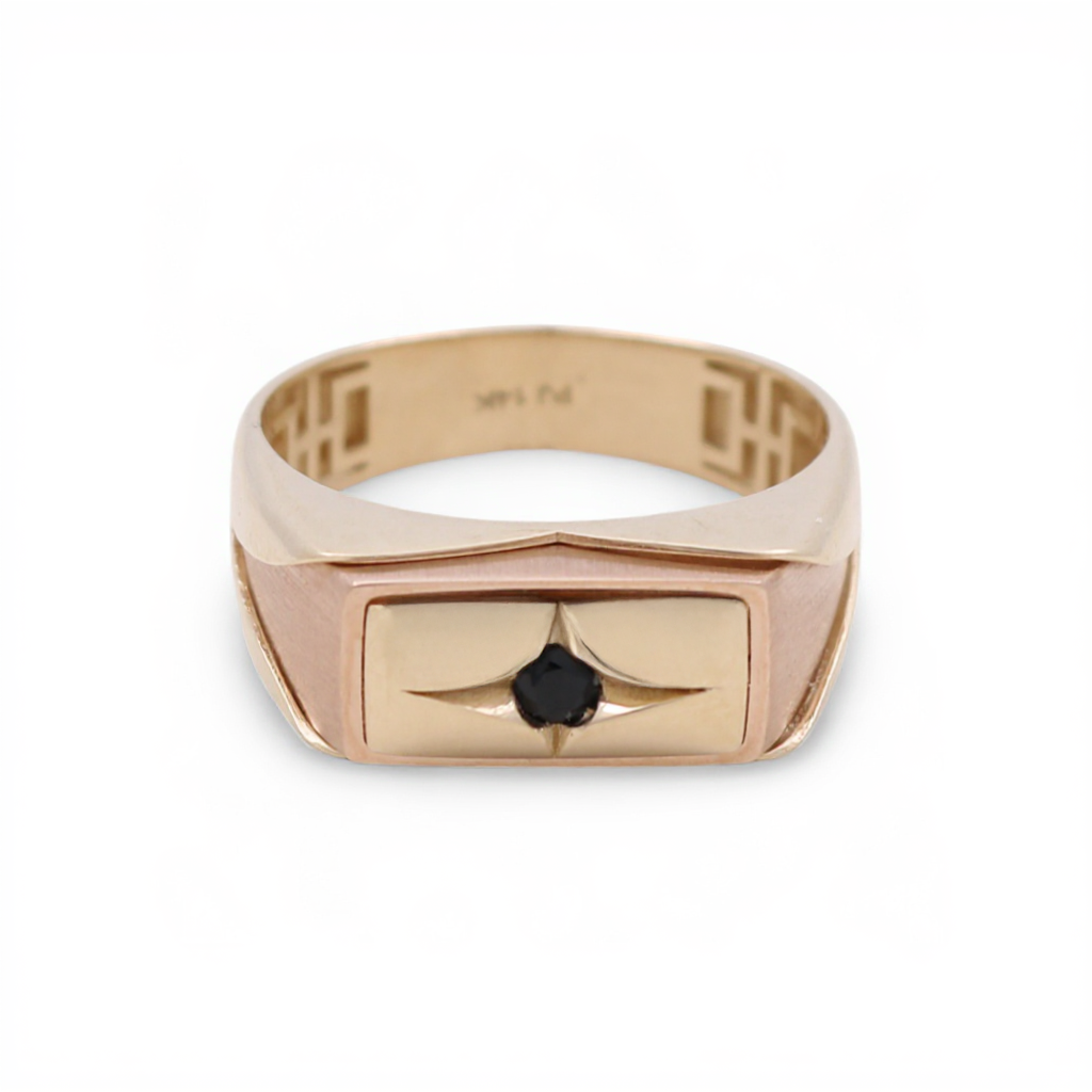 14K Yellow and Rose Gold Fashion Men's Ring with Black Cz / Size: 11.5 / Weight: 4.4 GR / DQMRTT4FS-3