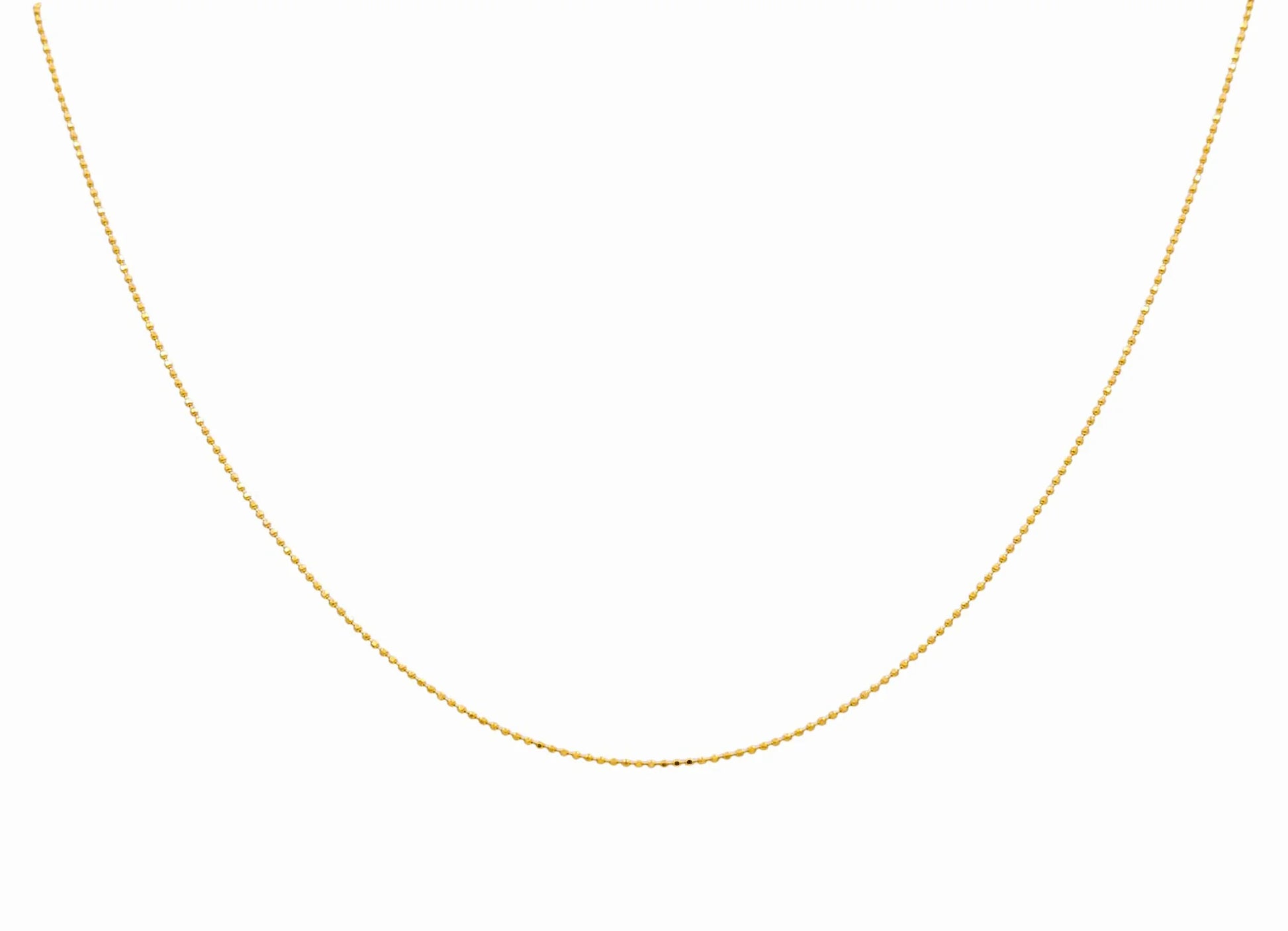 Delicate and elegant, this 14K yellow and white gold ball link chain features a refined 1mm design that blends two radiant gold tones for a subtle yet sophisticated look. The alternating polished beads create beautiful texture and movement, while the 18-inch length makes it perfect for everyday wear or layering with your favorite pendants. Lightweight and stylish, it adds a touch of modern elegance to any outfit.
