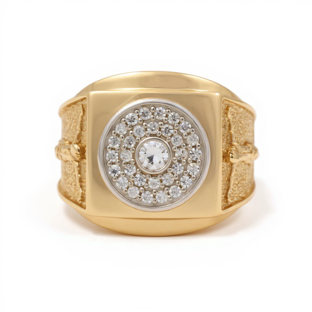 14K Yellow and White Gold Christ Men’s Ring with White Stones / Size 11 / Weight: 7.6 GR / DOMRTT4CR