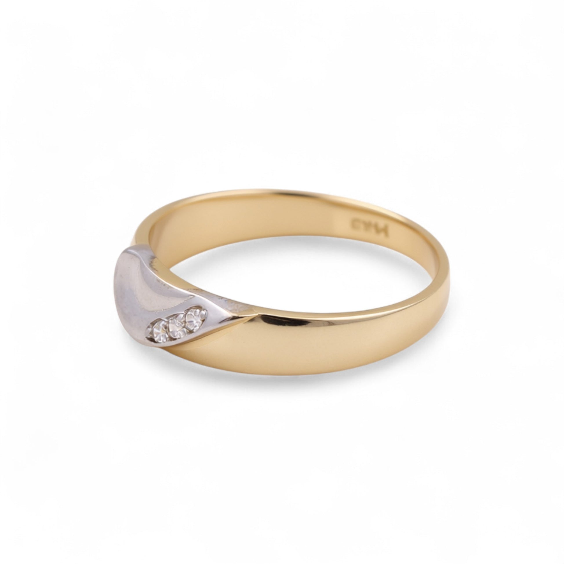 This 14K yellow and white gold men’s wedding band showcases a refined two-tone design, accented with sparkling cubic zirconia for a touch of brilliance. The fusion of warm yellow and cool white tones represents harmony, unity, and everlasting devotion.
