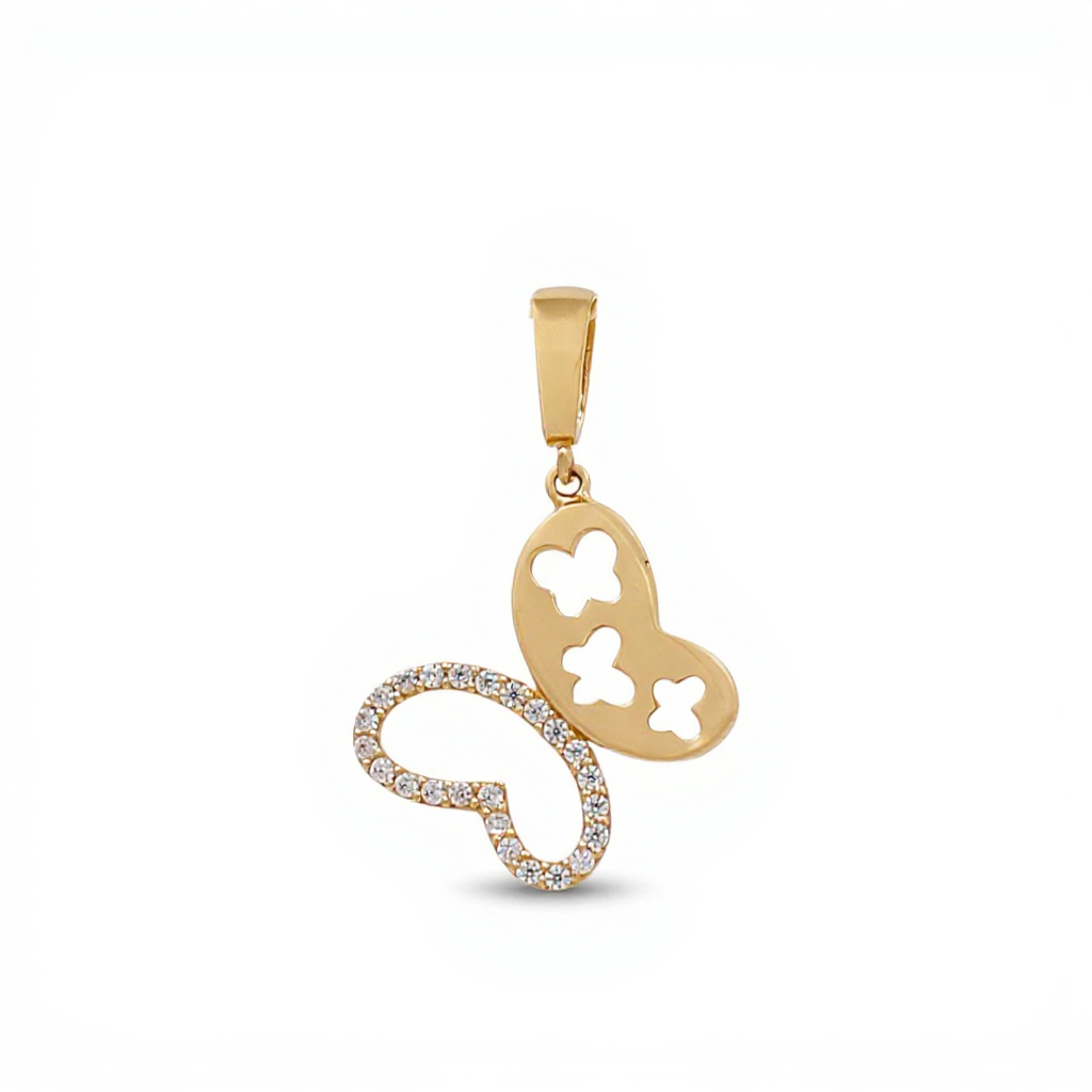 This 14K yellow gold pendant features a graceful butterfly design, symbolizing transformation and freedom. Accented with shimmering cubic zirconia, it captures light beautifully, adding elegance and charm to any look.