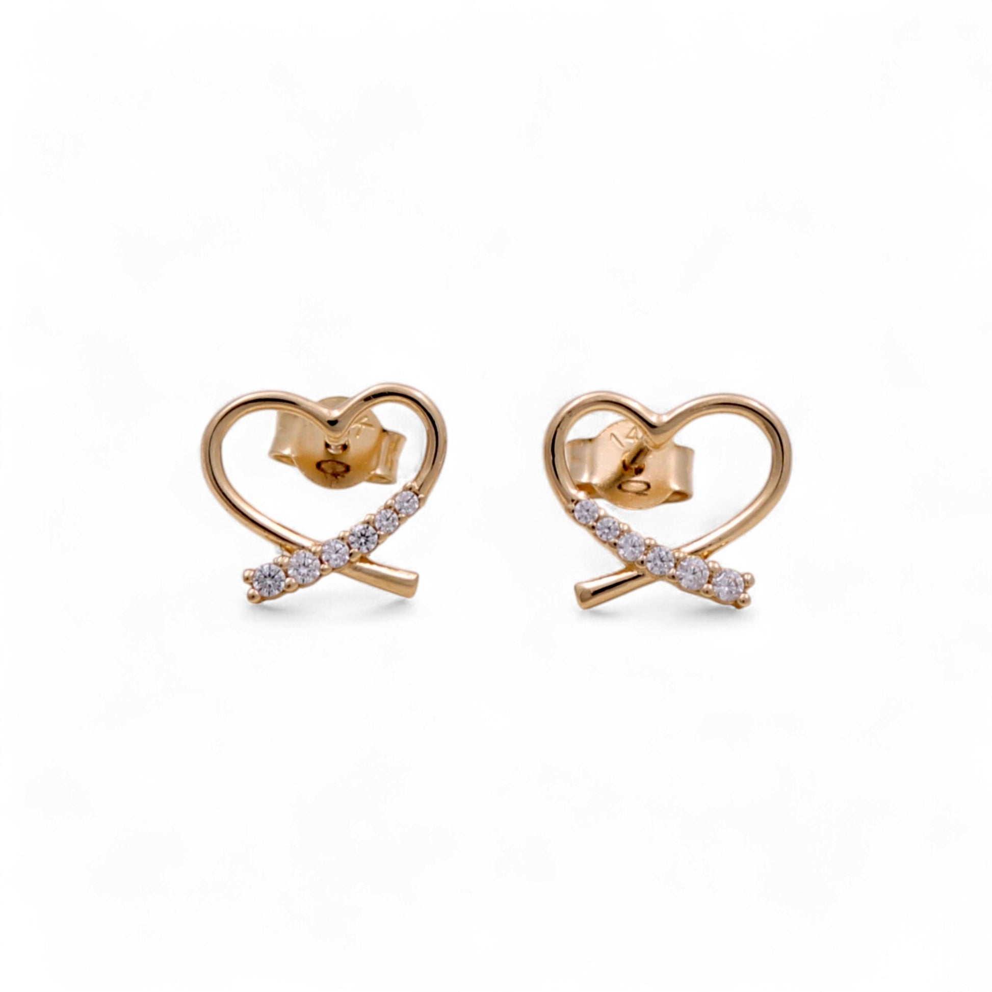 These 14K yellow gold stud earrings feature a delicate heart design accented with shimmering cubic zirconia for added brilliance. Their polished finish and graceful style make them the perfect everyday accessory or a thoughtful gift of love.
