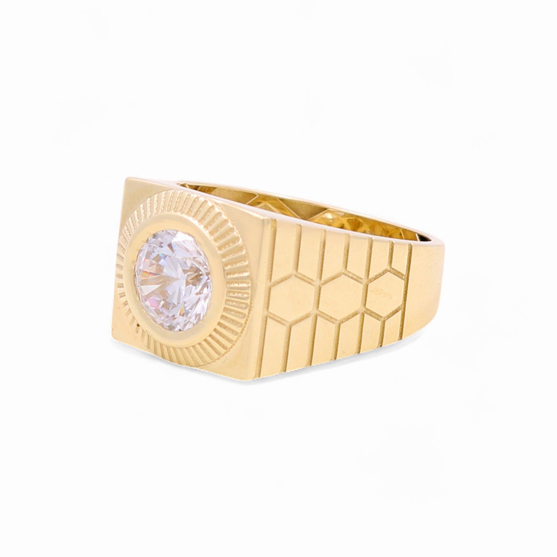 14K Yellow Gold Fashion Round Men's Ring with White Cz / Size 10 / Weight: 6.7 GR / BOMR4FS-39