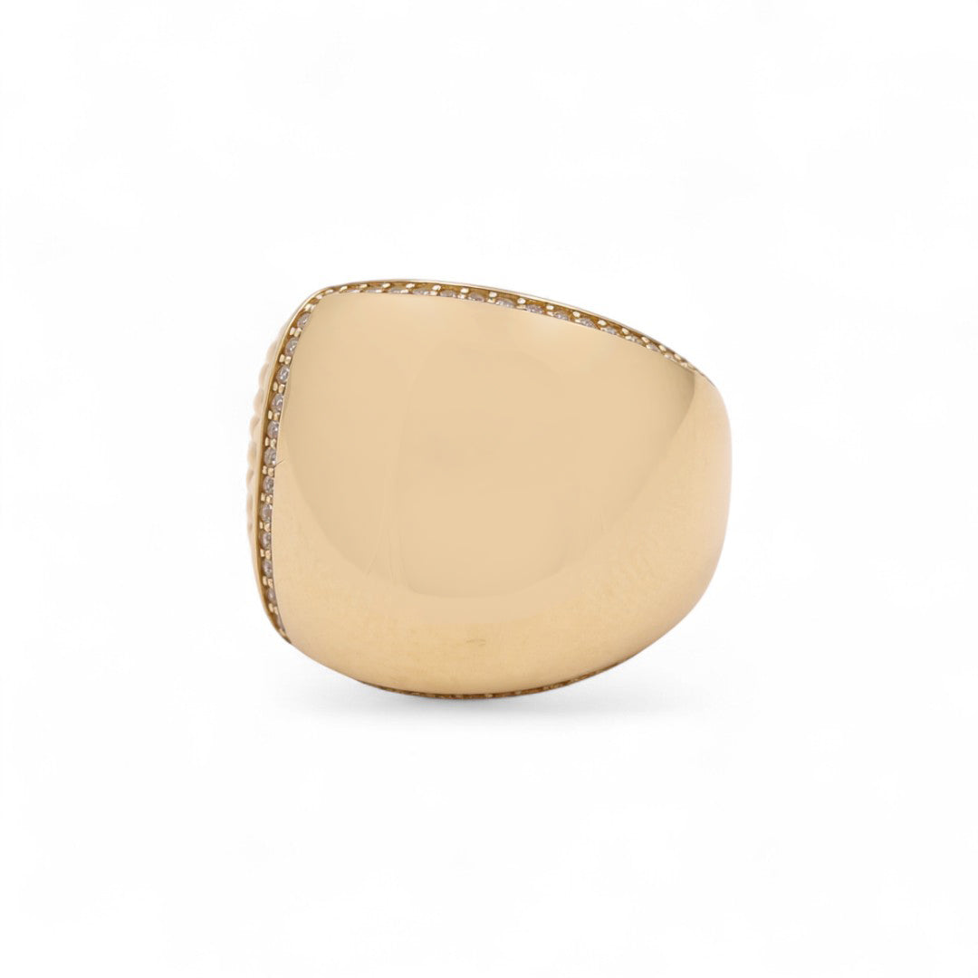 This 14K yellow gold fashion ring is adorned with radiant cubic zirconia, blending bold design with luxurious sparkle. Its polished finish and refined setting make it an eye-catching piece that exudes confidence and sophistication.