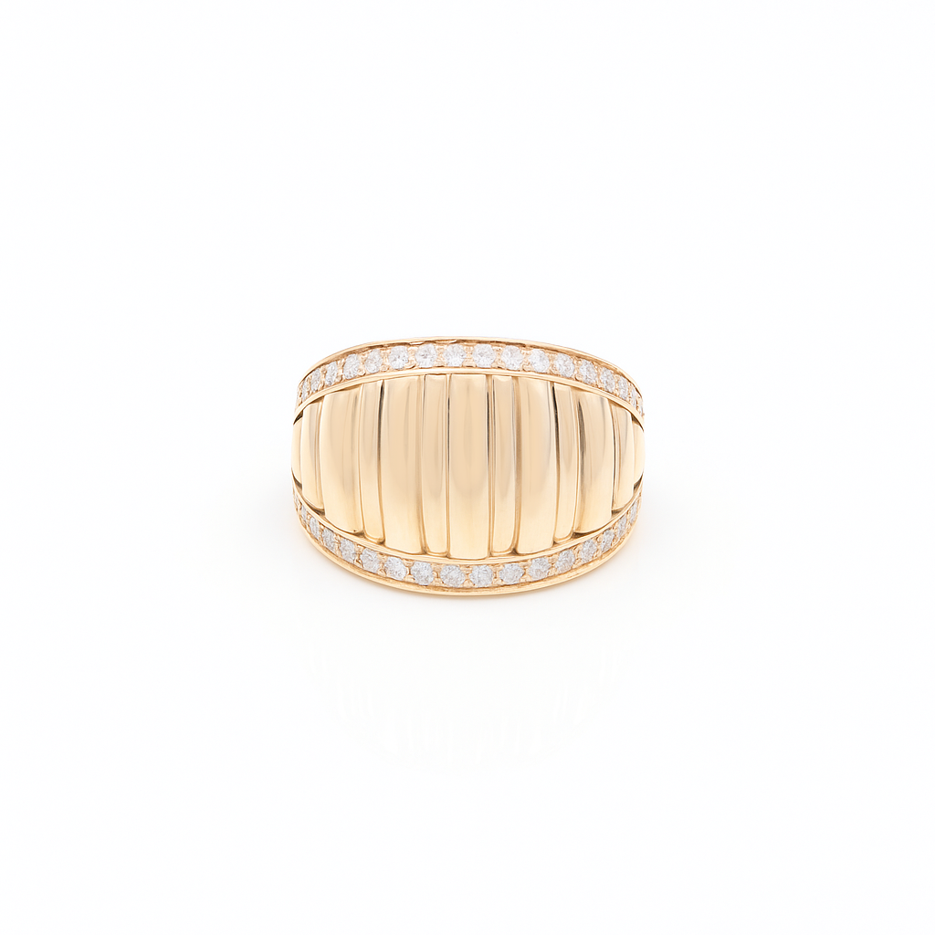 This 14K yellow gold ring features elegant white cubic zirconia, bringing subtle brilliance to a timeless design. Sized at 8.5 and weighing 3.1 grams, it's a versatile piece that blends effortlessly with both casual and formal looks.