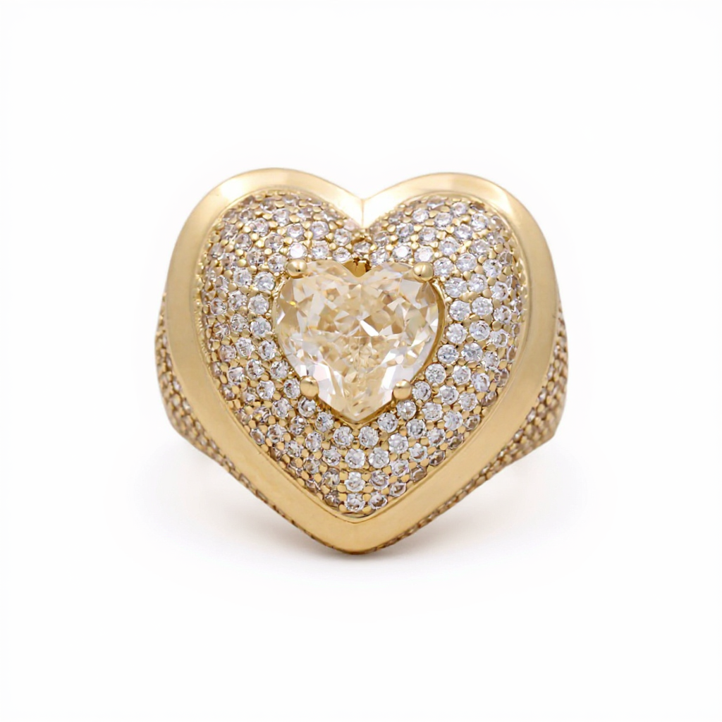 14K Yellow Gold Heart Women's Ring with White Cz / Size: 8 / Weight: 7 GR / BOWR4HR-14
