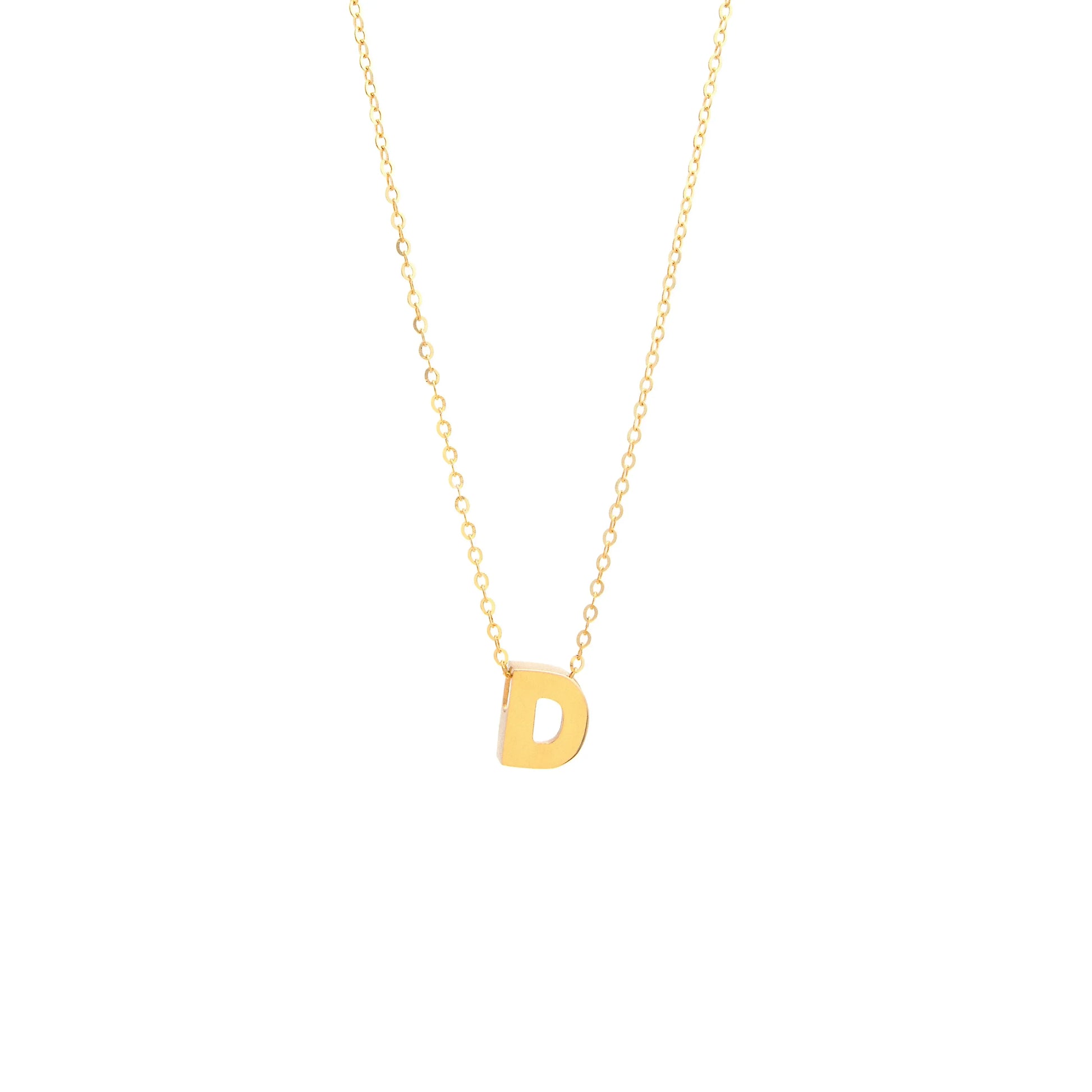 This 14K yellow gold necklace features a sleek, polished letter D pendant on an 18-inch chain. Elegant and minimal, it’s the perfect everyday piece—whether you’re celebrating your own initial or gifting someone special.