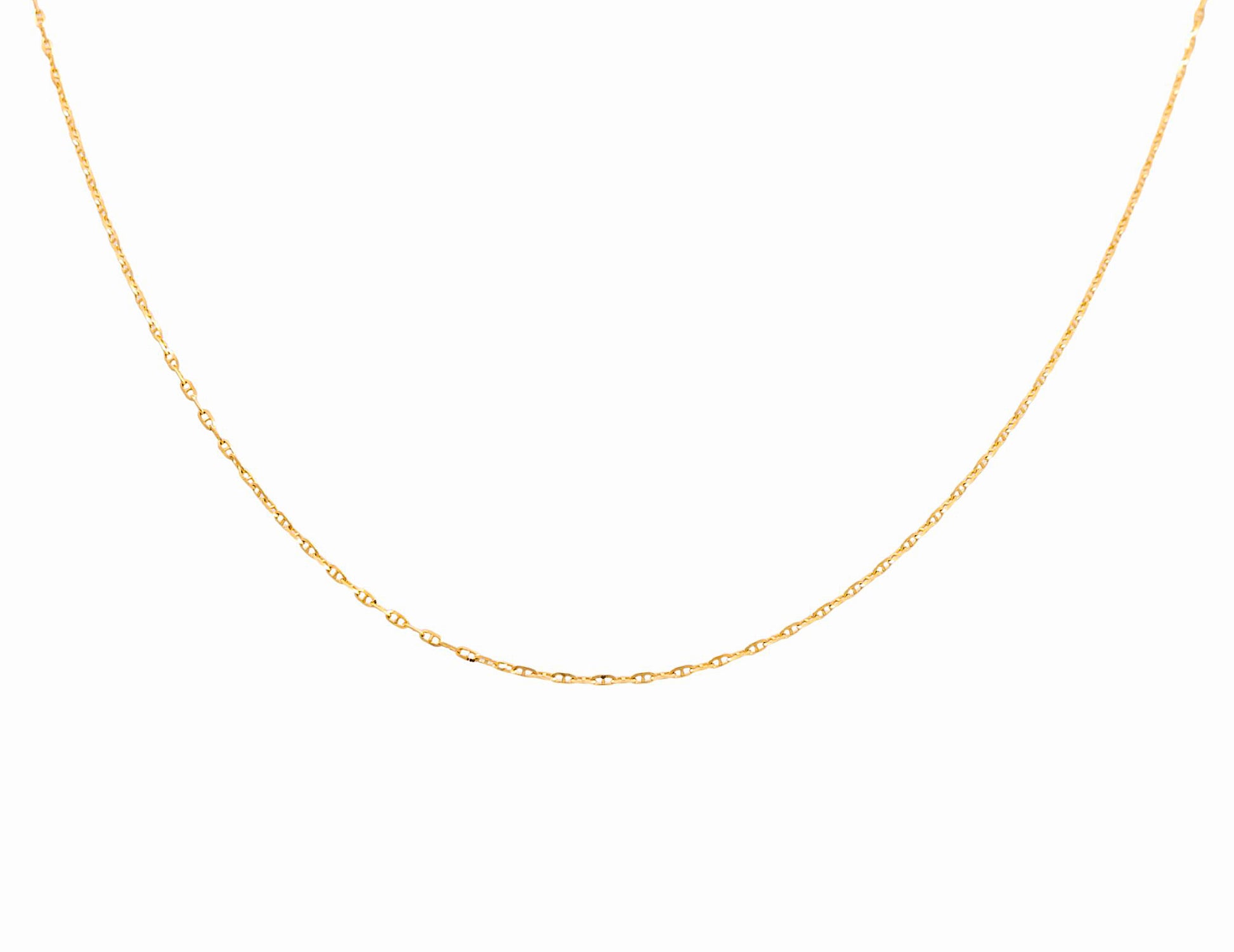 This 14K yellow gold Italian mariner chain offers a minimalist look with timeless appeal. Measuring 1mm wide and 16 inches long, it’s lightweight at 1.7 grams, making it perfect for everyday wear or layering with your favorite pieces.