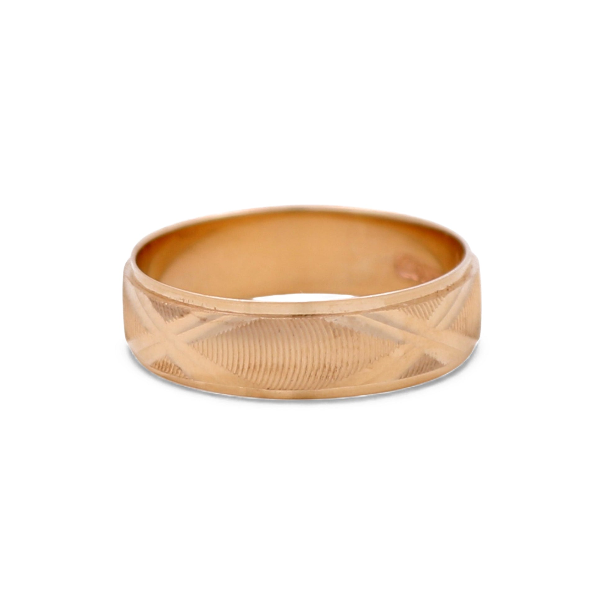 Timeless and refined, this 14K yellow gold wedding band features an intricate design that adds texture and sophistication to its classic form. The polished finish enhances the natural warmth of the gold, creating a distinguished look that’s perfect for everyday wear. Crafted with precision and comfort in mind, it’s a lasting symbol of love and devotion.