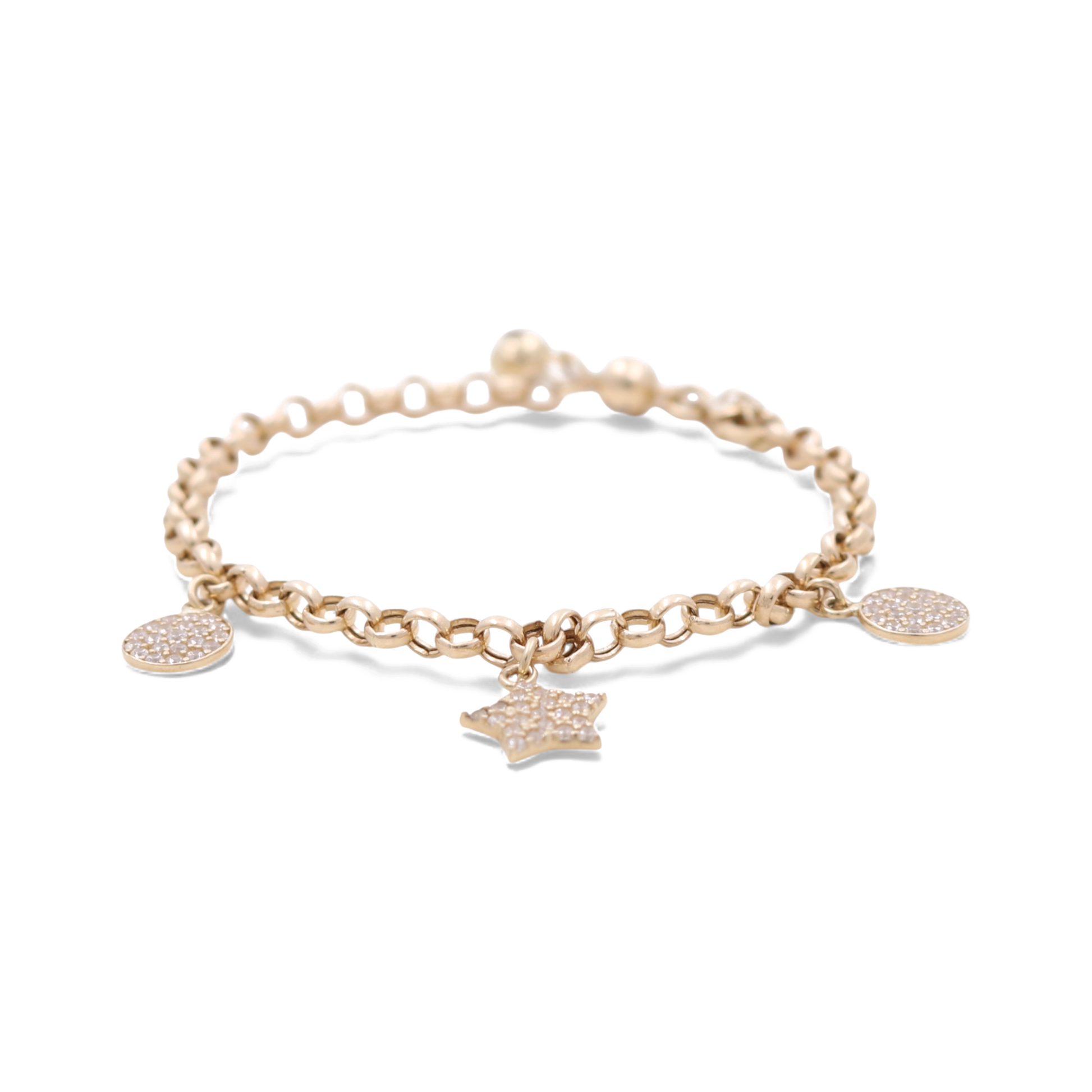 14K Yellow Gold Rolo Link Women’s Bracelet with Star and CZ