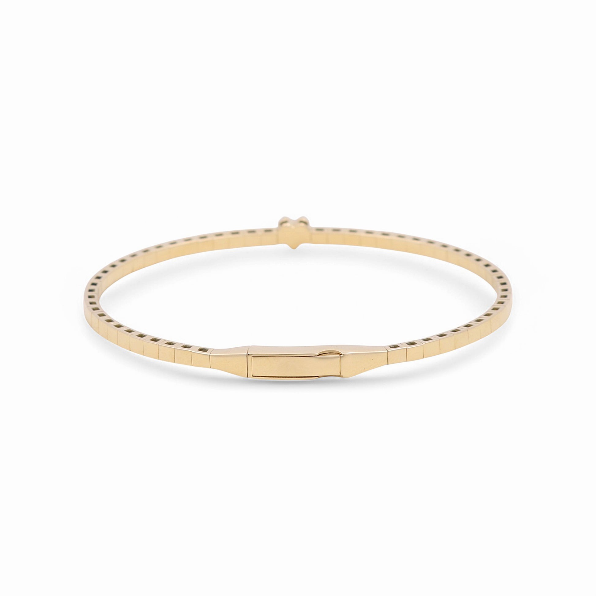 This lovely 14K yellow gold women’s bangle bracelet features a semisolid design with a sweet small heart centerpiece, accented with sparkling cubic zirconia for a touch of brilliance. Romantic and refined, it’s perfect for expressing love in an elegant, everyday way.