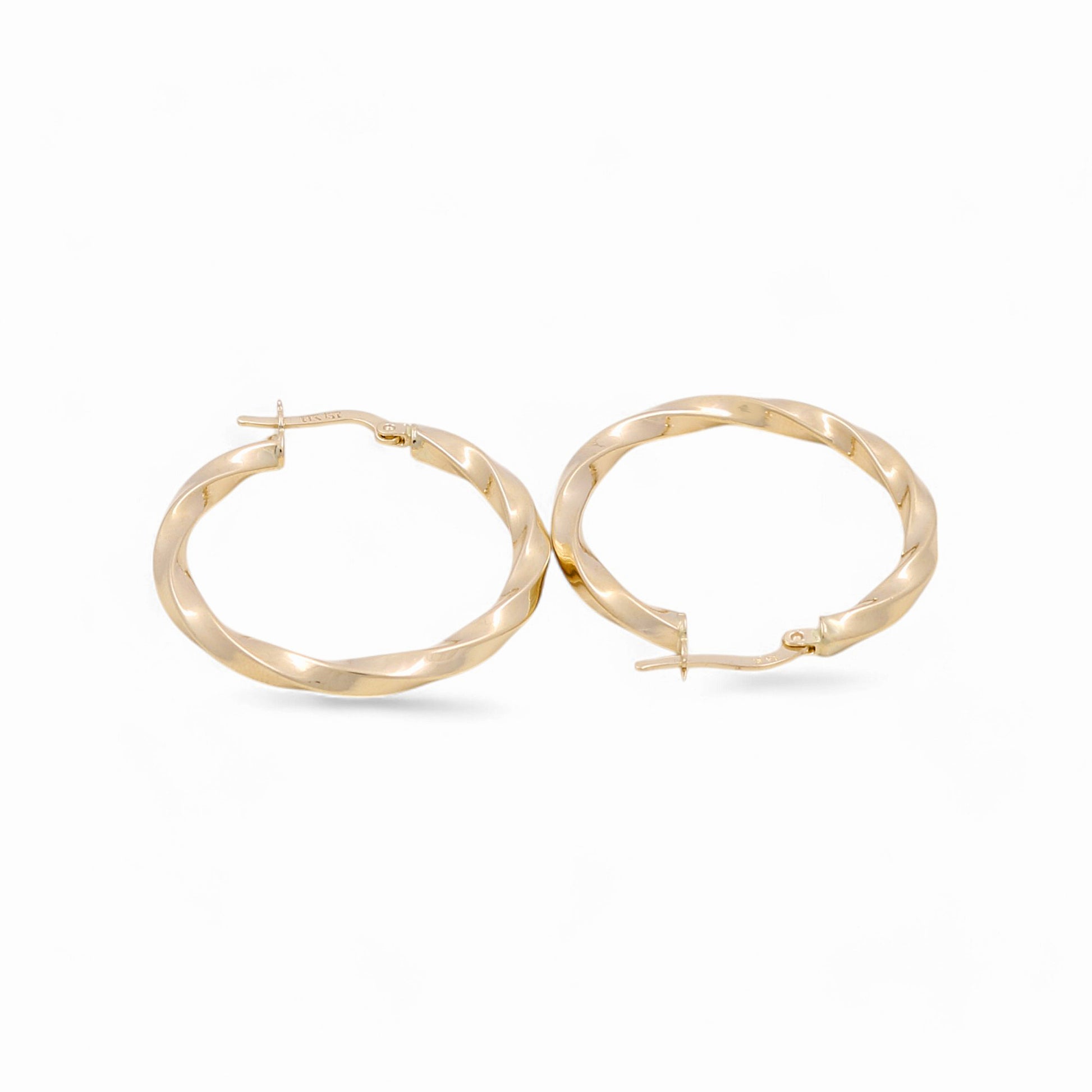 Handcrafted in 14K yellow gold, these twist hoop earrings are the perfect way to add a touch of elegance and sophistication to any outfit. The unique twist design adds depth and dimension to the classic hoop style, making them a truly special and eye-catching piece. And with a weight of 2.8 GR, these earrings are lightweight and comfortable to wear all day long. Invest in lasting quality and timeless style with these beautiful 14K yellow gold twist hoop earrings.