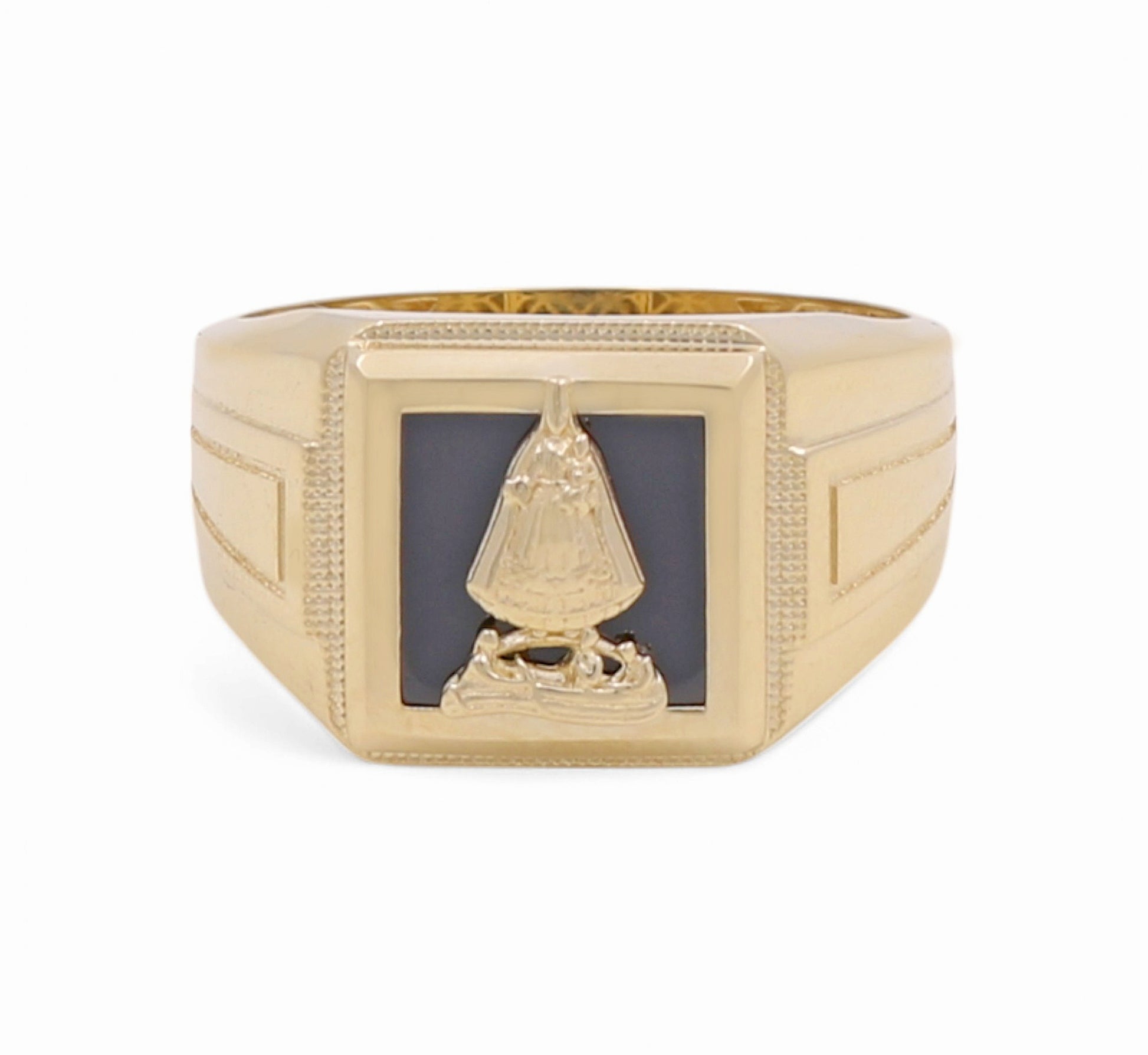 14K Yellow Gold Virgen de la Caridad Men's Ring / Size: 10.5 / Weight: 5.6 GR / P04FM-690