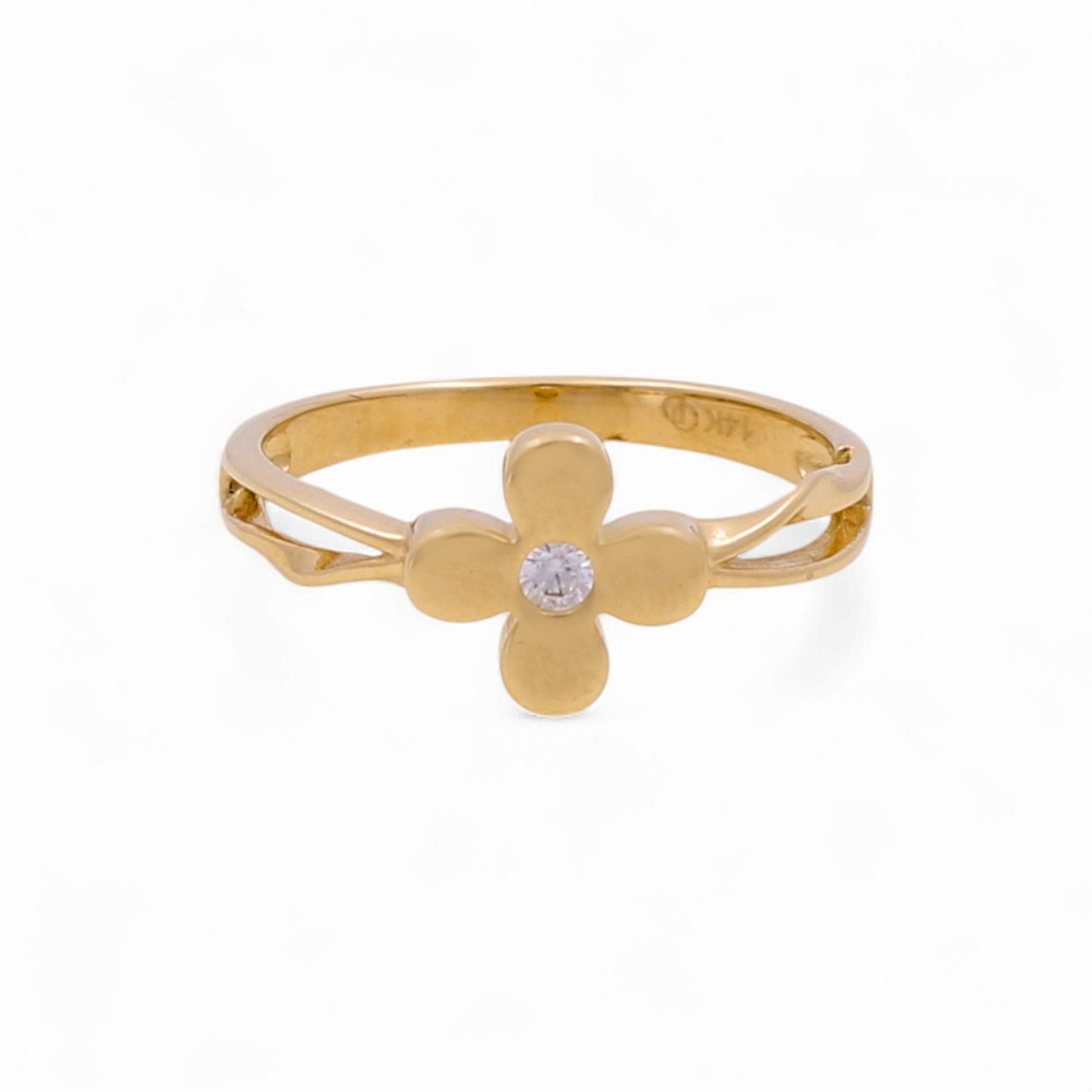 14K Yellow Gold Woman’s Flower Ring / Stone: CZ / Size: 7.5 / Weight: 2 GR / KEEWR4FL-2