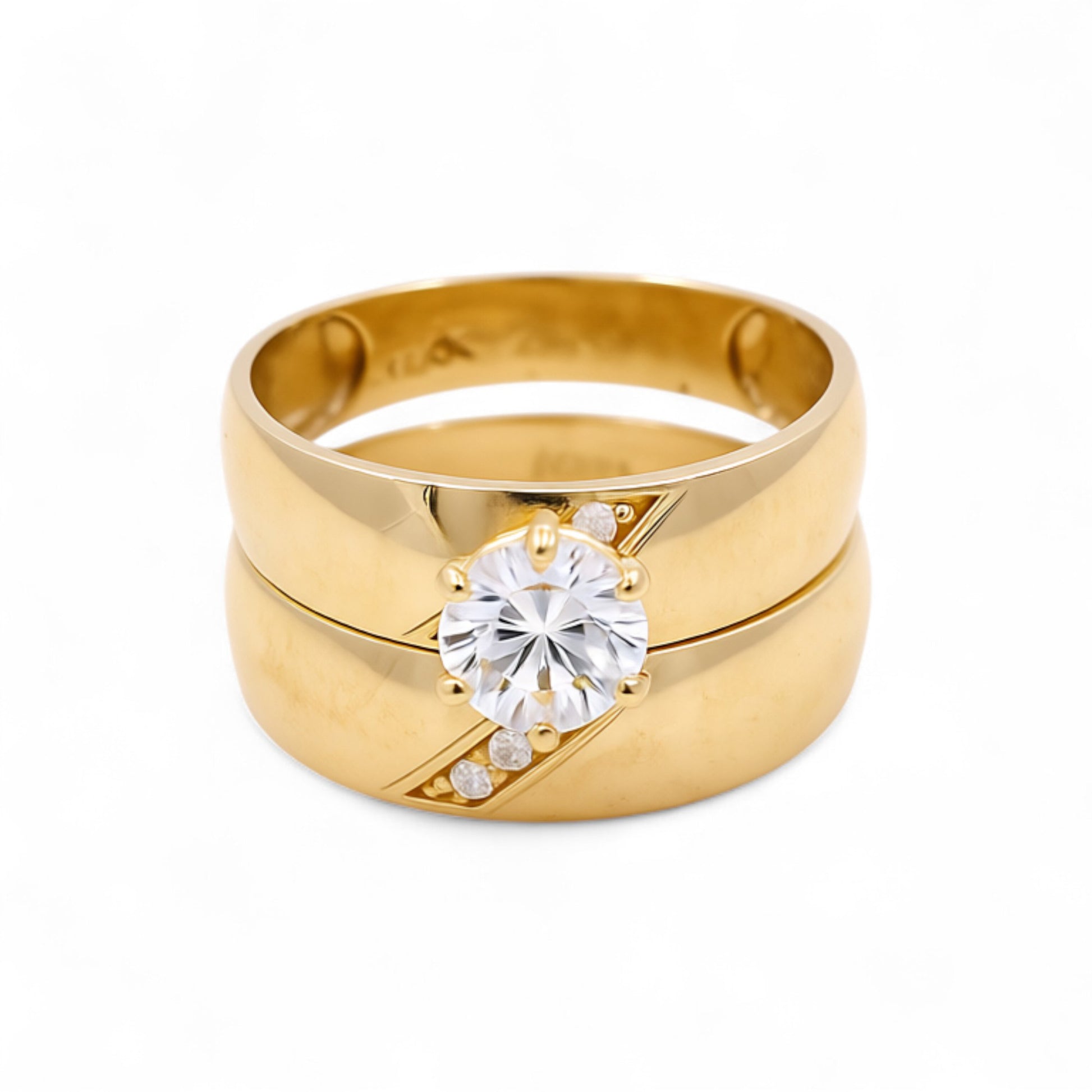 The engagement ring and wedding band complement each other beautifully — a reflection of unity, strength, and forever. More than jewelry, it’s a golden celebration of love that shines through every moment.