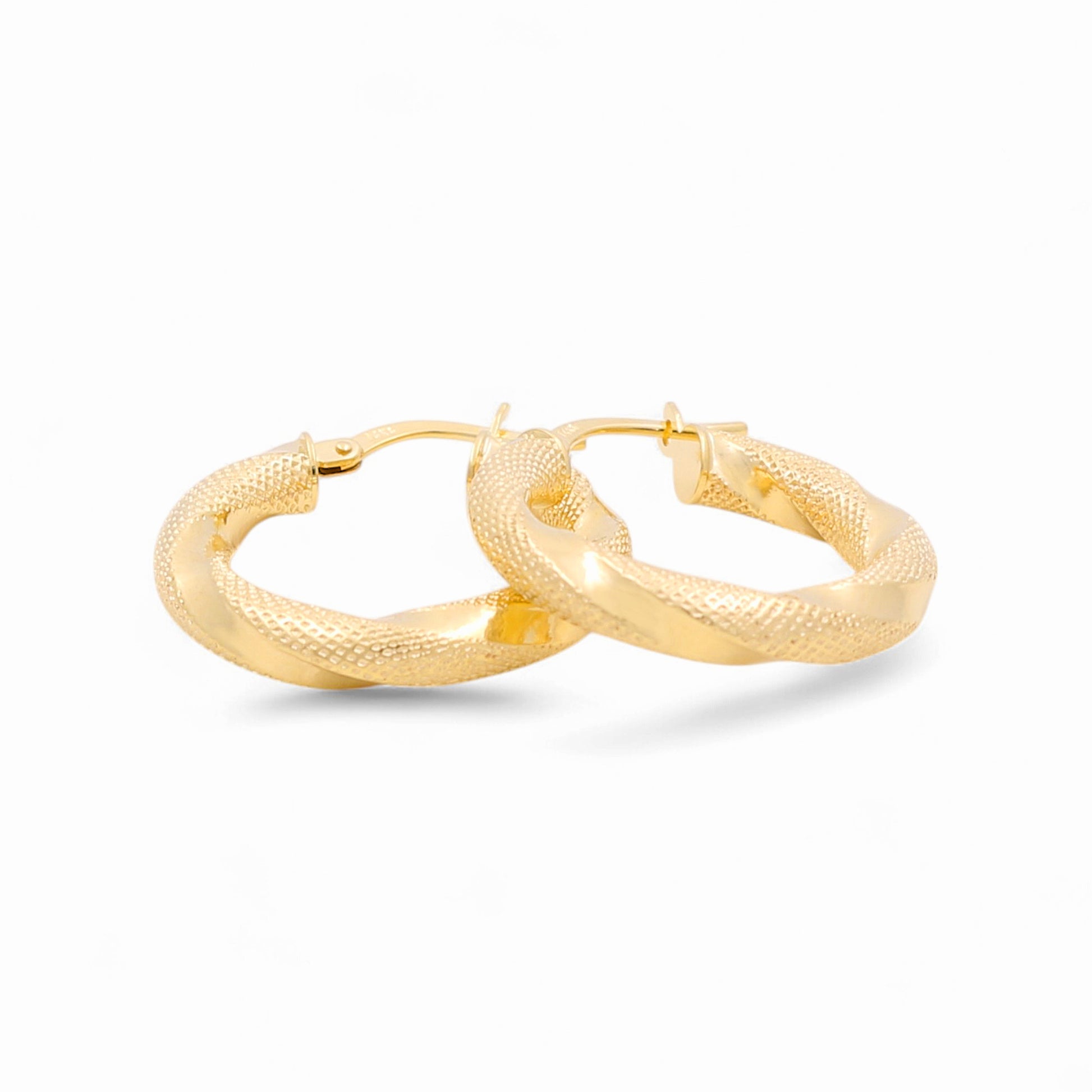 Crafted in 14K yellow gold, these women’s fashion hoop earrings feature a compact 15mm diameter and a bold 3.5mm thickness. The diamond-cut finish adds brilliant texture and shimmer, making them the perfect touch of elegance for everyday wear.